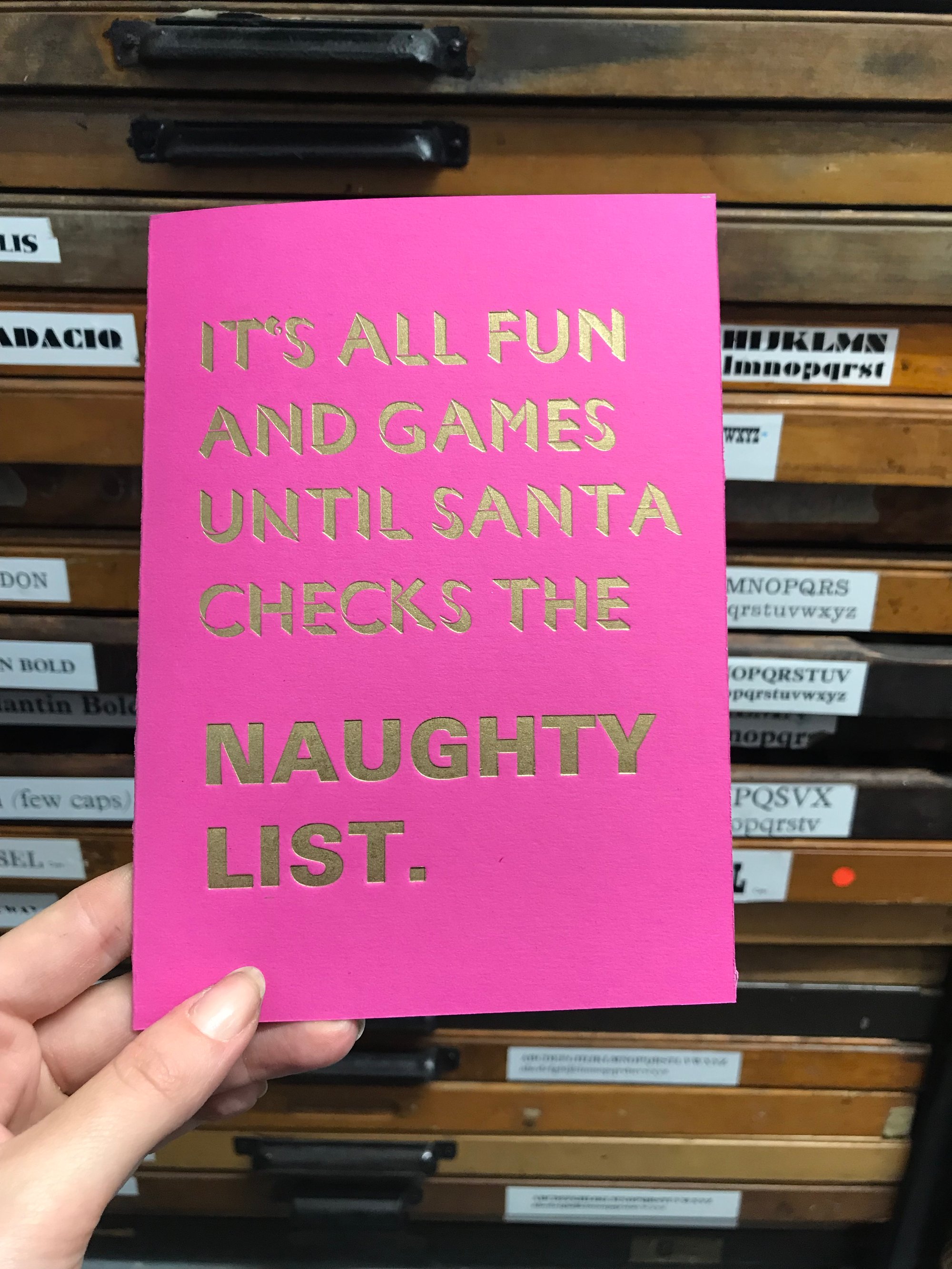 Come to Ink Spot Press this November for an exclusive Christmas card printing workshop. In this 3 hour lesson, print your own cards using our large collection of wood and lead fonts, to create something special, that will get you in the Christmas spirit.